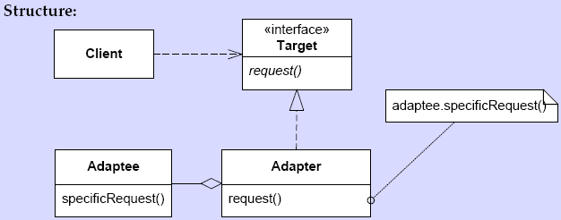 Review the UML diagram for the Adapter pattern (Design pattern box [21.1] in FRS) (reproduced below).